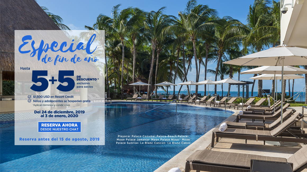 - Promoción aplica en Beach Palace, Playacar Palace, Cozumel Palace, Isla Mujeres Palace, Moon Palace Nizuc, Moon Palace Sunrise, Moon Palace Jamaica, Le Blanc Spa Resort Cancún and Le Blanc Spa Resort Los Cabos.
